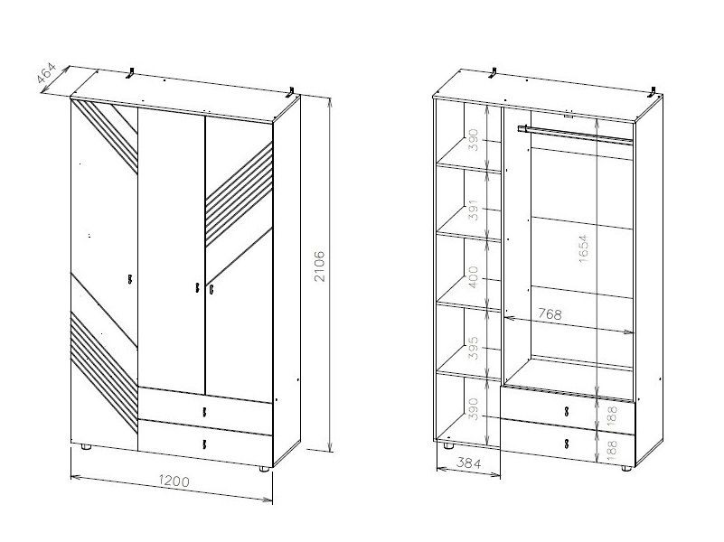 Размеры (Ш*В*Г)(мм): 1200*2106*464