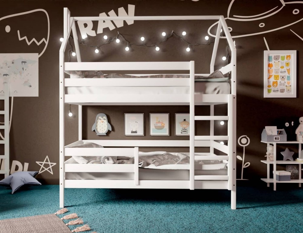 *Стоимость указана за модули: Кровать-домик двухъярусная 80*160 Белый (Ящики в стоимость не входят)