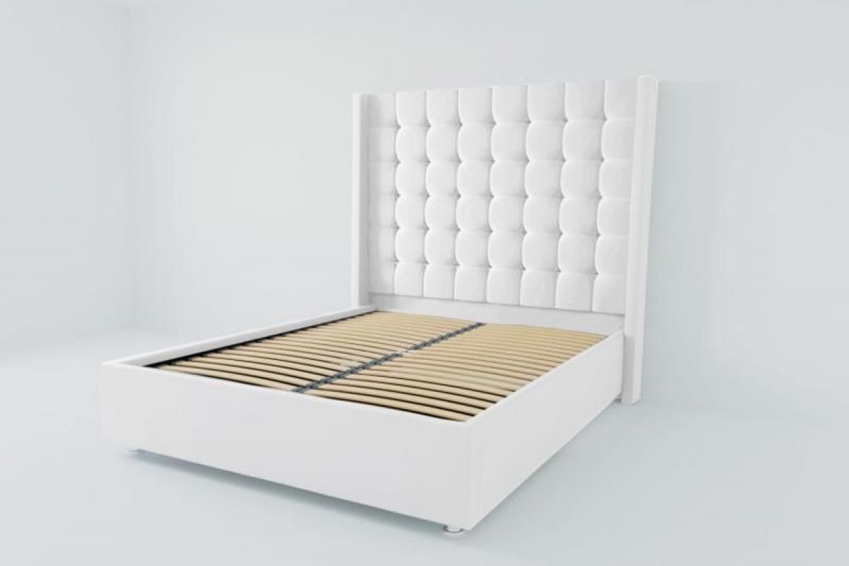 Основание кровати: металлическим основанием с ортопедическими латами.