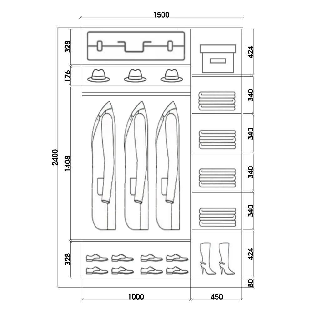 Размеры (Ш*В*Г)(мм): 1500*2400*620