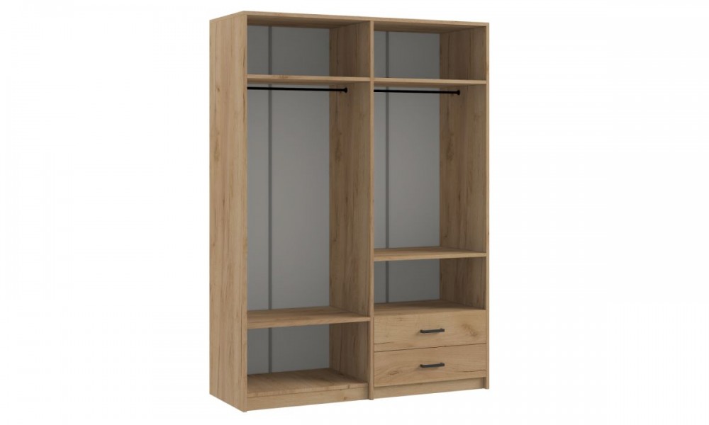 Имеет два отделения под одежду с антресольными полками и штангами под одежду