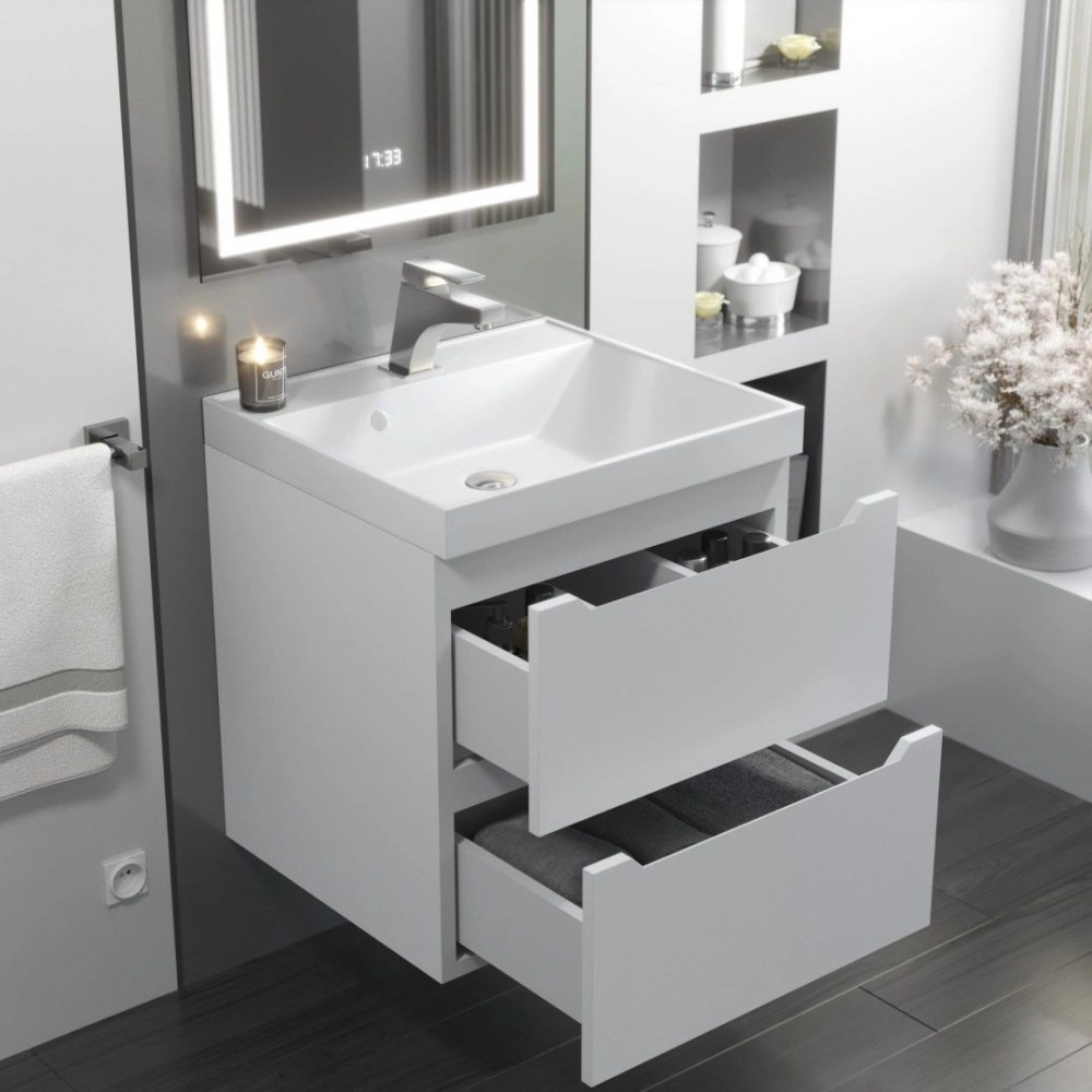 Тумба с раковиной Uperwood Tanos 50 см, подвесная, белая матовая